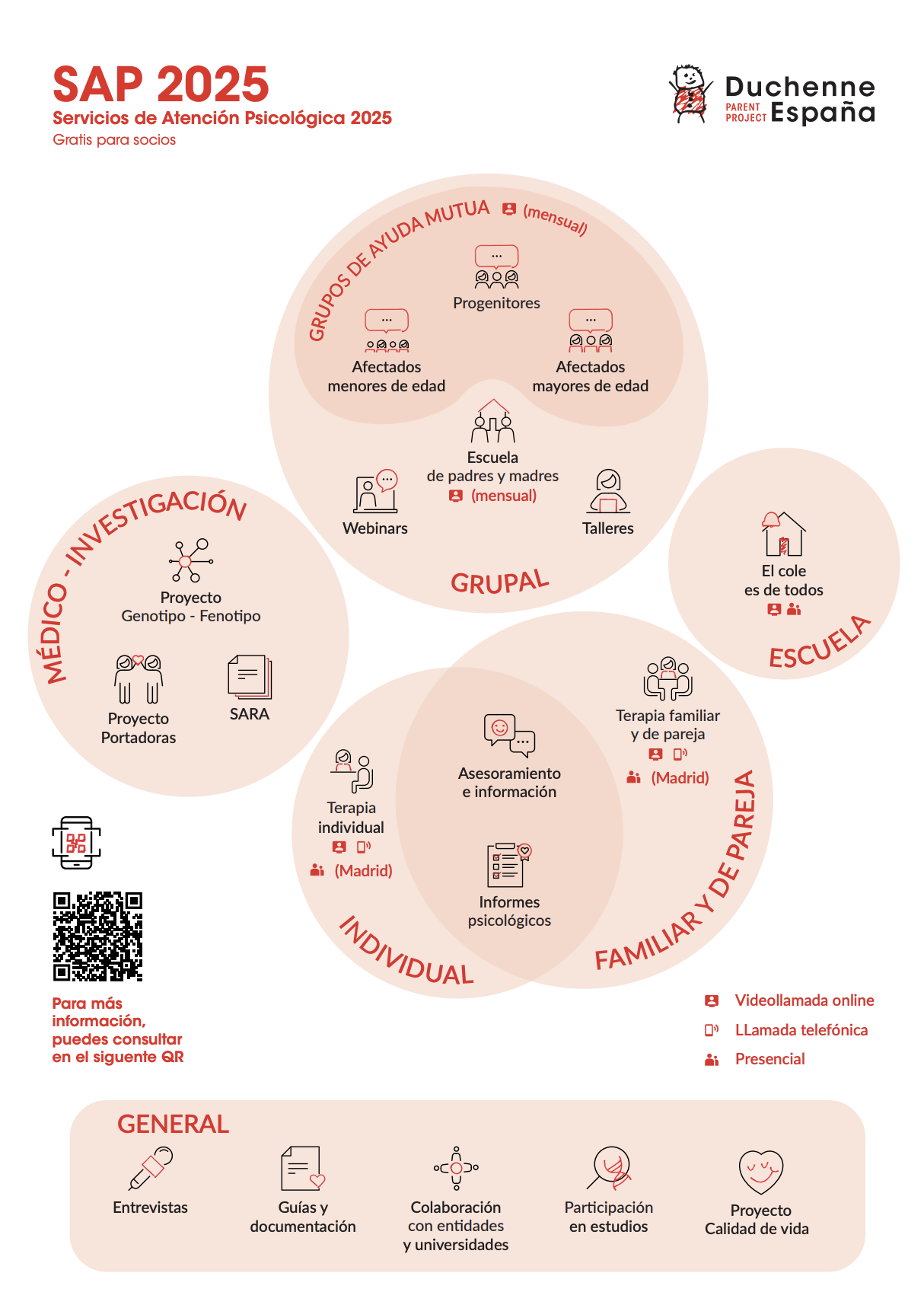 Desde Duchenne Parent Project España (DPPE), sabemos por lo que estáis pasando. Por ello ponemos a vuestra disposición el Servicio de Atención Psicológica (SAP) de manera gratuita para todas las personas que sean soci@s de Duchenne Parent Project España.